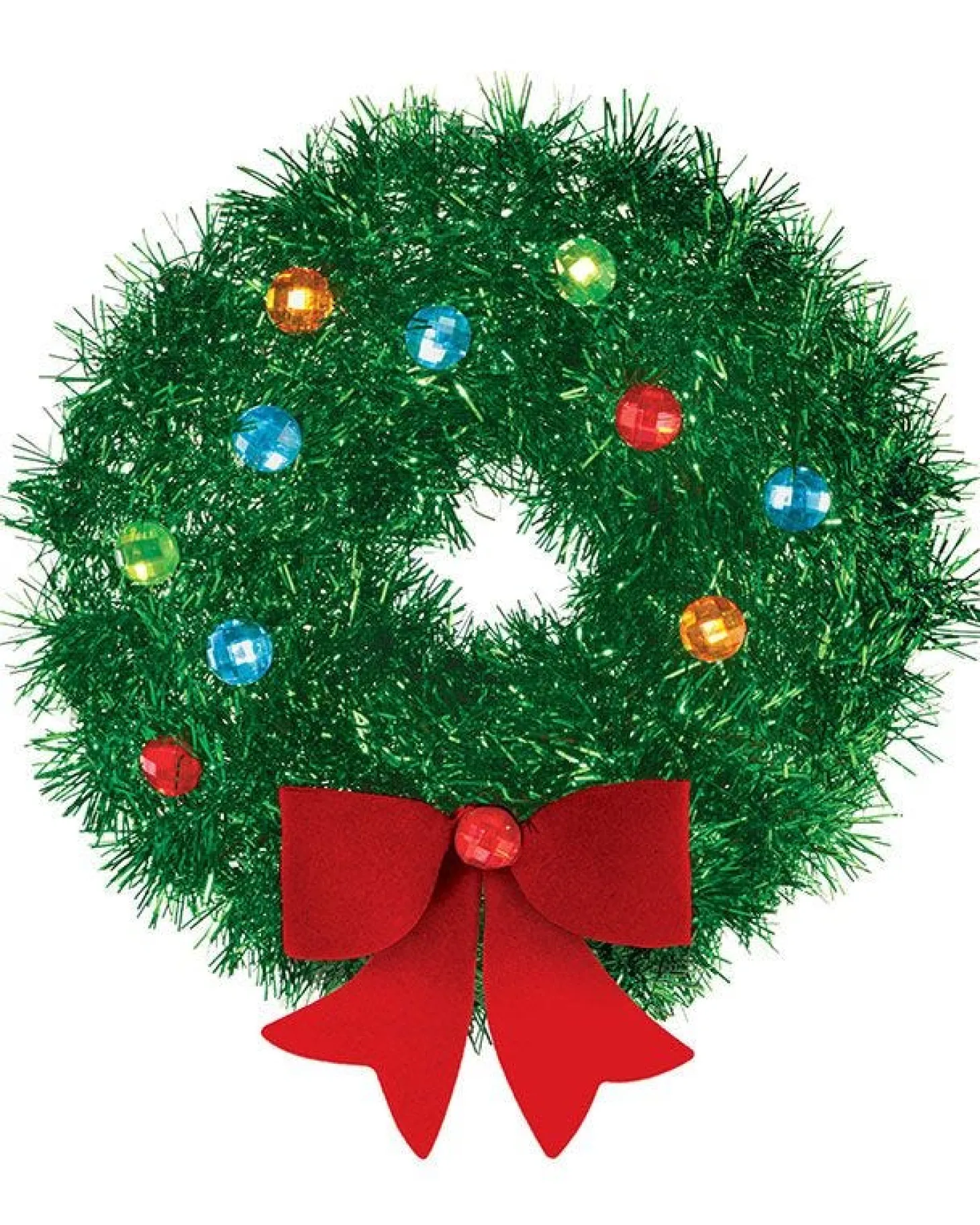 Decorated With Colourful Little Beads, This Mini Christmas Wreath Will Add A Festive Touch To Your Tree, Table Or Front Door This Year. Made From Green Tinsel It’Ll Add A Little Sparkle To Your Decorations And It’s Finished With A Pretty Red Bow At The Bottom.
